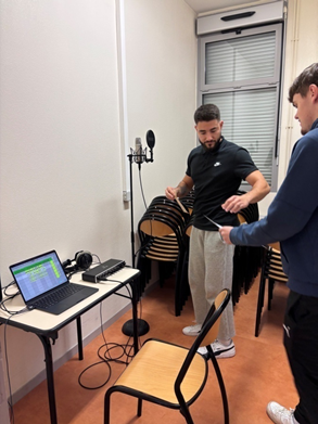 Puis ceux-ci ont participé par petits groupes à plusieurs ateliers, pour écrire un morceau de rap, autour d’un thème commun : eux-mêmes ! Cléon a accompagné la classe dans le processus de création avec bienveillance et pédagogie. Puis les lycéens ont enregistré le morceau avec le propre studio de l’artiste, en live.